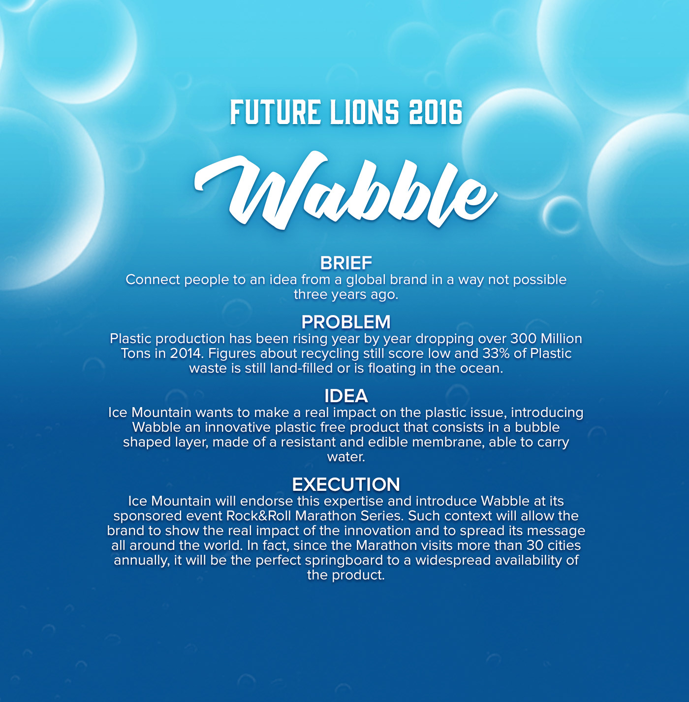 Ice Mountain wants to make a real impact on the plastic issue, introducing Wabble an innovative plastic free product that consists in a bubble shaped layer, made of a resistant and edible membrane, able to carry water.
